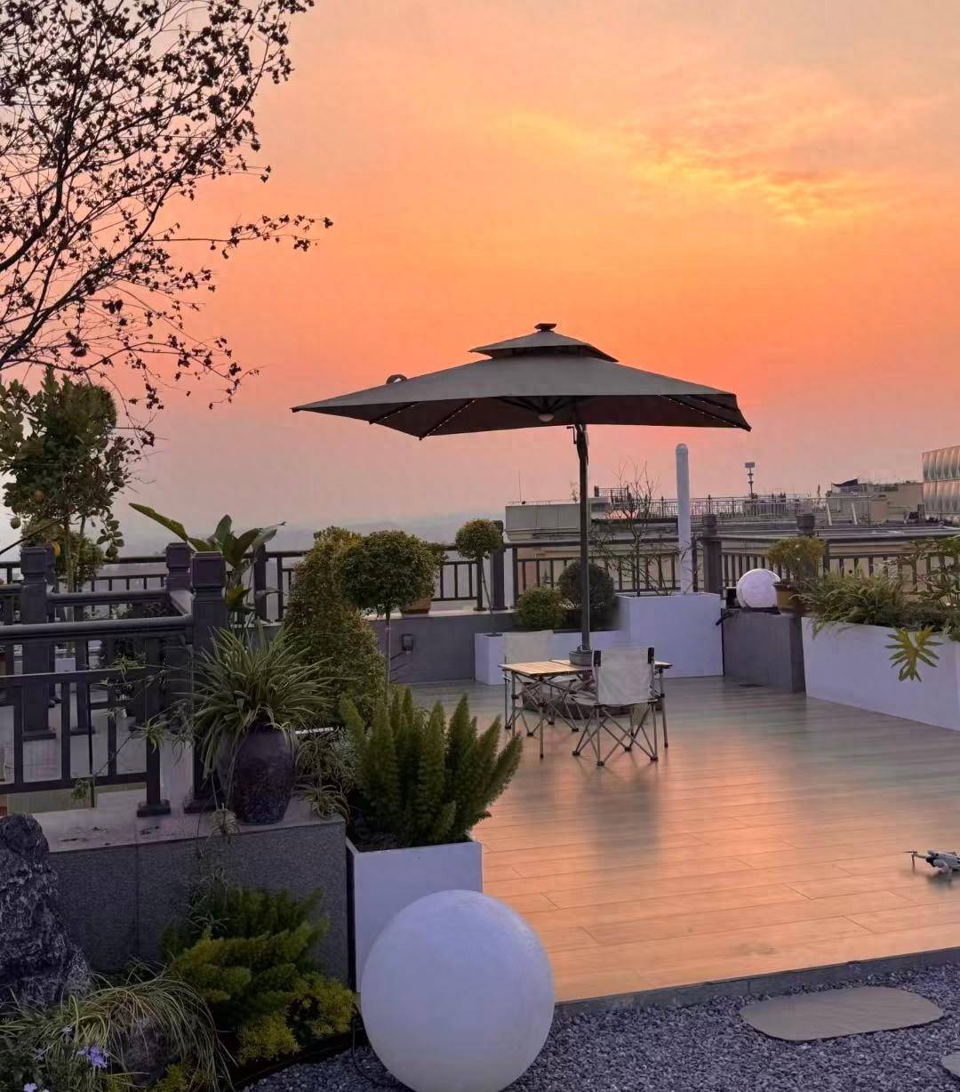 看了好多套房子后,终于选定了一套顶楼带露台的房子,将近50㎡的露台都是赠送的,算是私有面积,不会有别人使用,看着很不错,尤其是傍晚在露台上看晚霞,浪漫又惬意。