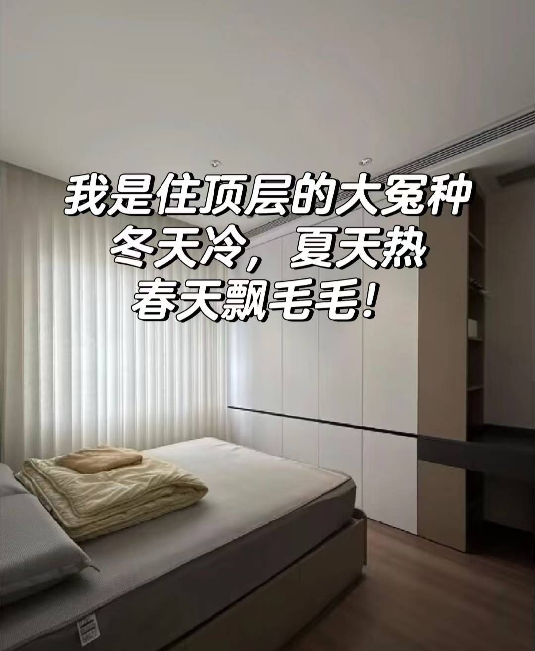 虽说冬天不管住哪一层都冷,夏天不管哪一层都热,但是顶楼和其他楼层不一样,它冬天更冷、夏天更热。