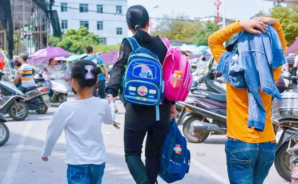 她经常是第一个冲到校门口排队,儿子刚露头,她就伸手夺过书包,往自己肩上一挂:“书包这么沉,压坏你的肩膀怎么办?”